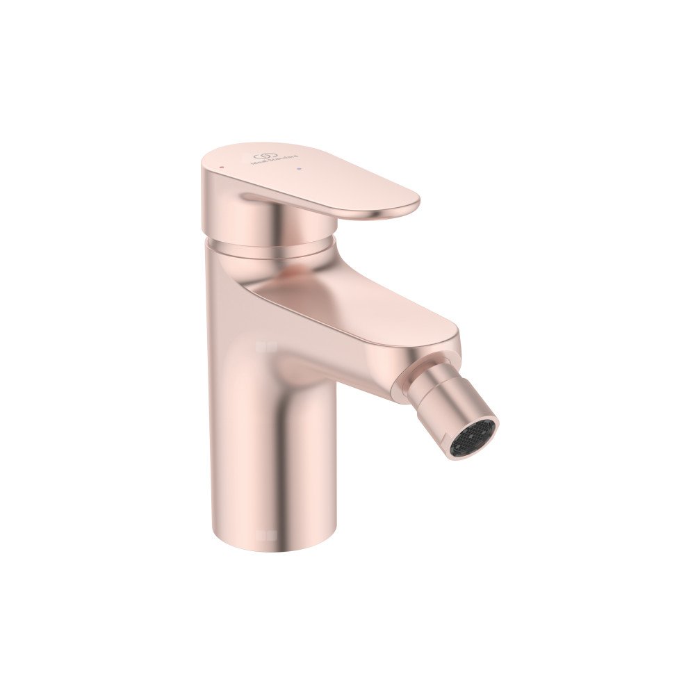 Bateria bidetowa 46x144x140 mm, wylewka 115 mm w kolorze różowym 3.8 l/min (3 bary), z korkiem spustowym, prostownica Flow, regulowany wylot, technologia Blue Start, technologia Cool Body, firmaFlow, elementy rdzenia z aluminium - Alu+