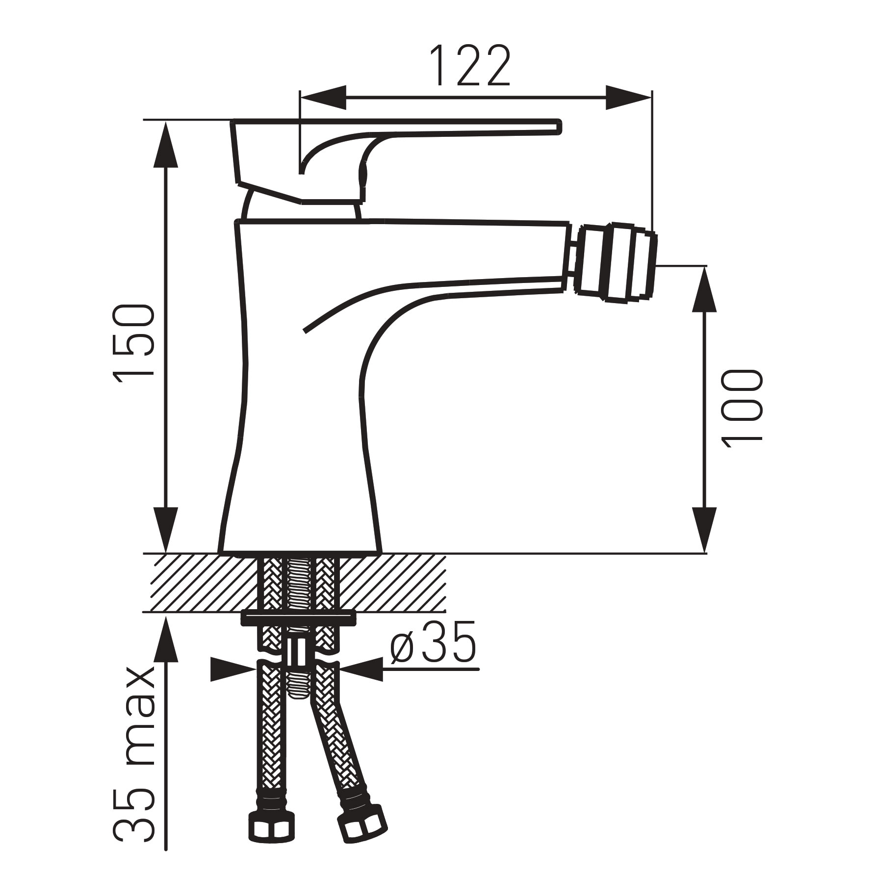 Bateria bidetowa o delikatnym kształcie z prostokątnym uchwytem w nietypowym dwu-kolorowym wykończeniu chromu z czernią. Idealnie pasuje do nowoczesnych wnętrz.