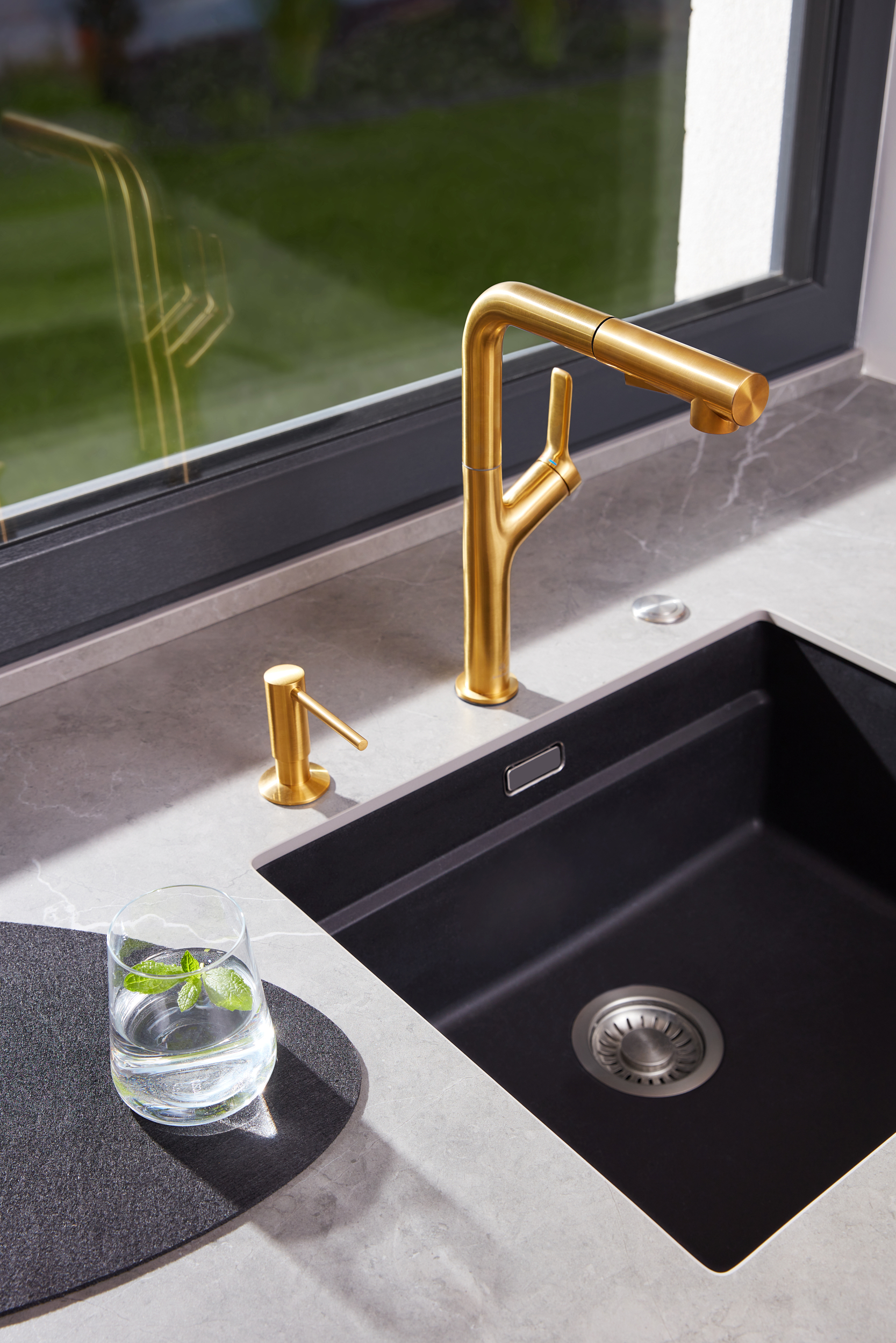 Bateria duero design kuchenna stojąca z wyciąganą i obrotową wylewką, gold