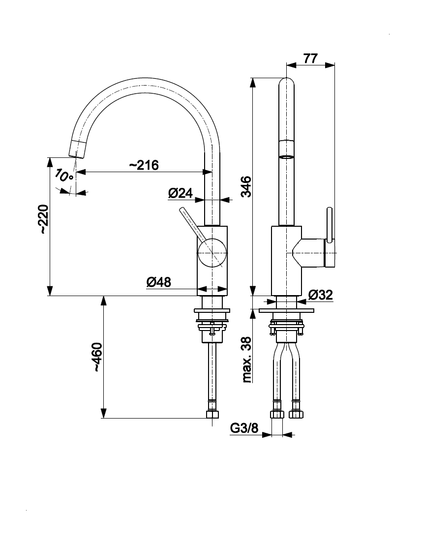 Bateria kuchenna o przepływie 5 l/min - stal nierdzewna