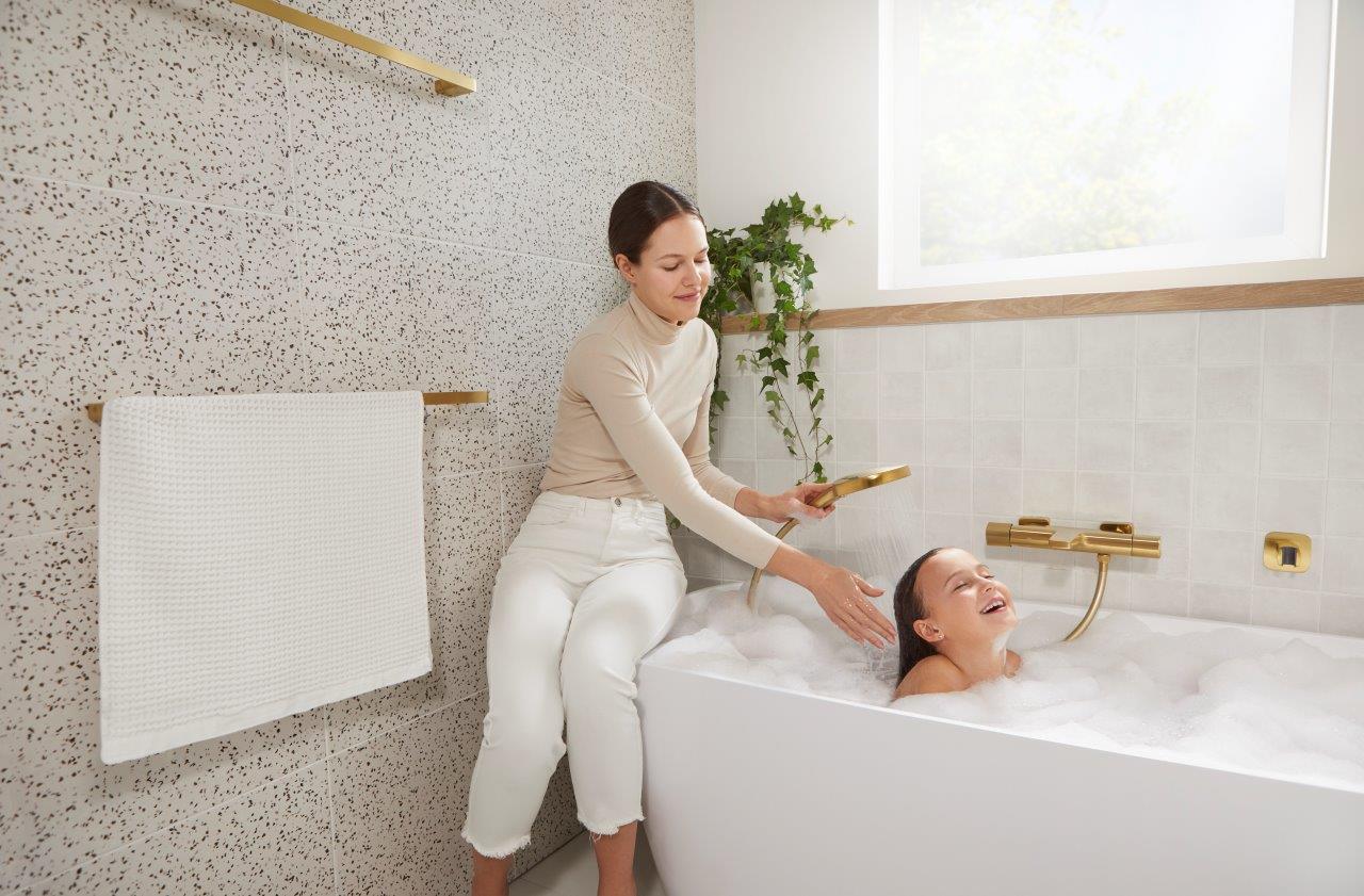 Bateria malaga, termostatyczna, wannowa, ścienna, pvd brushed gold