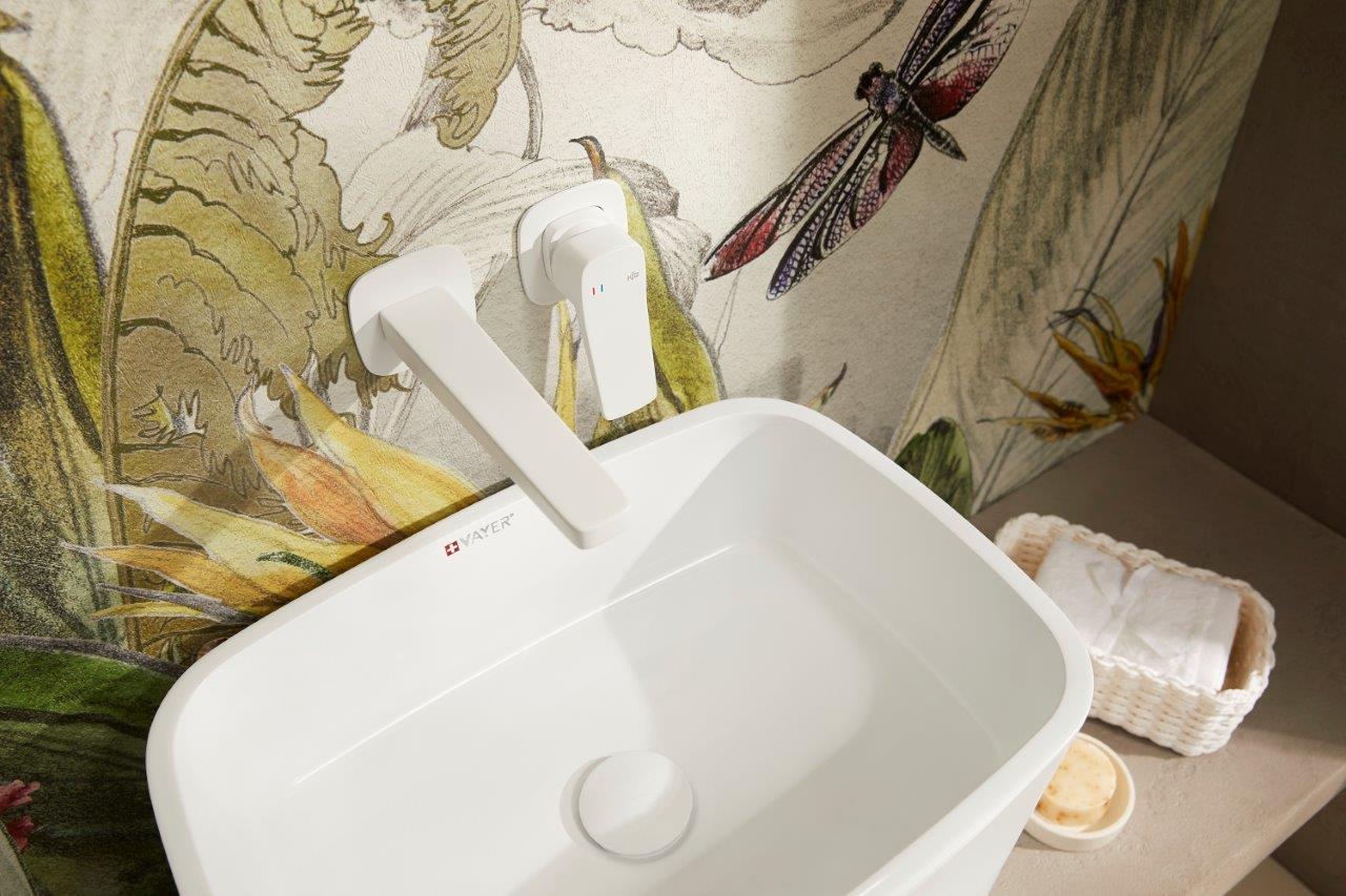 Bateria Malaga, umywalkowa, podtynkowa, ścienna, white