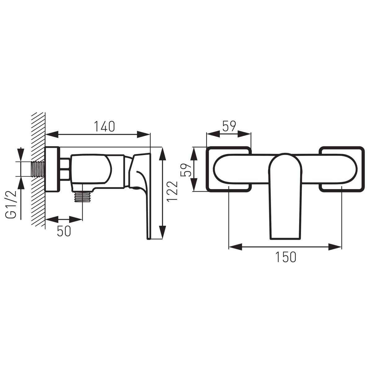 Bateria natryskowa o ciekawym kształcie z prostokątnym uchwytem w nietypowym dwu-kolorowym wykończeniu chromu z czernią. Idealnie pasuje do nowoczesnych wnętrz. Uniwersalne przyłącze 1/2" umożliwia montaż dowolnego zestawu natryskowego.