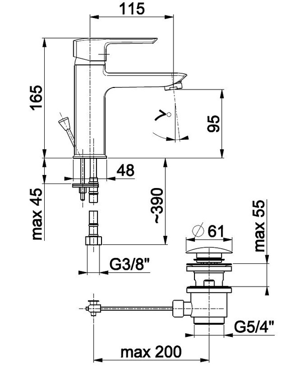 Bateria umywalkowa KFA Armatura AQUAMARYN, chrom, montaż blat / otwór na baterię