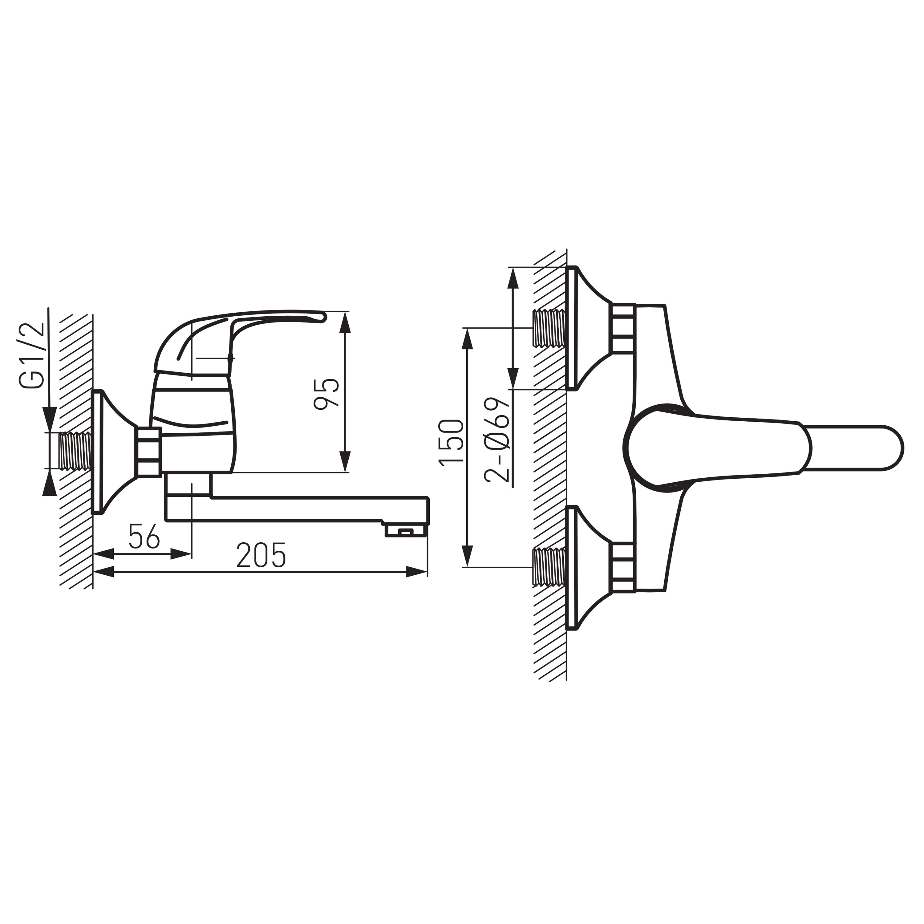 Bateria umywalkowa ścienna FERRO VASTO, chrom