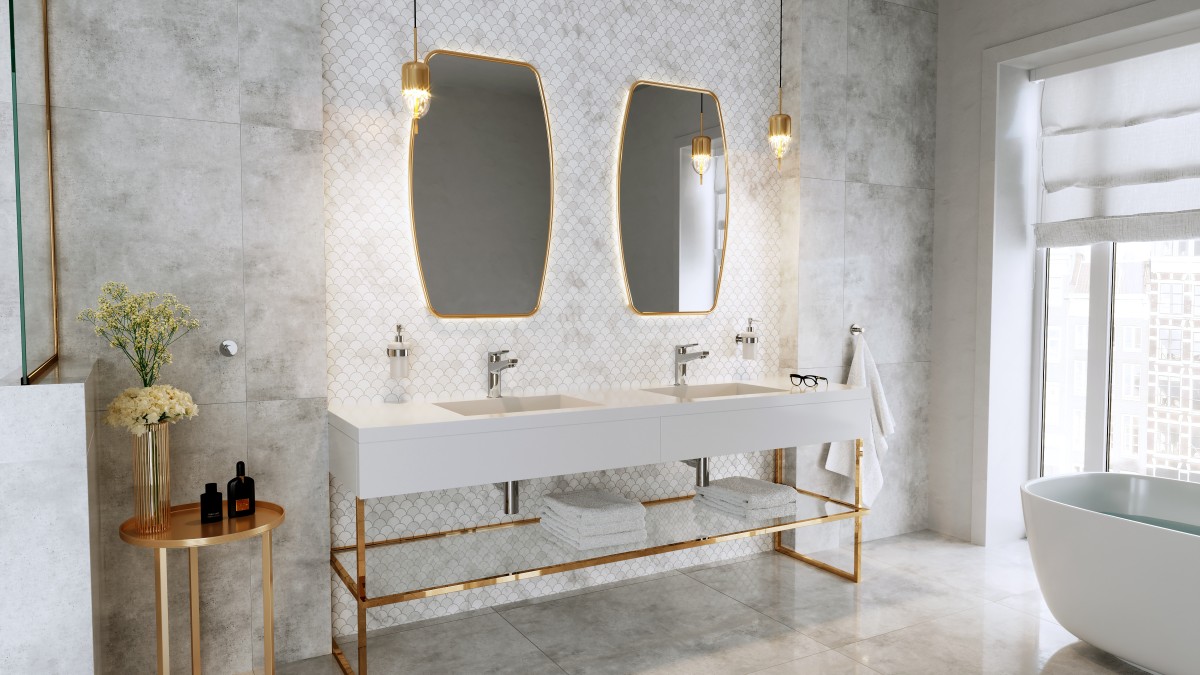 Bateria umywalkowa w subtelnym dizajnie. Świetnie wpisuje się do nowoczesnych aranżacji.
