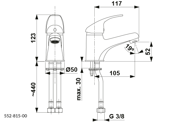 Bateria umywalkowa stojąca KFA Armatura BARYT, chrom, montaż blat / otwór na baterię