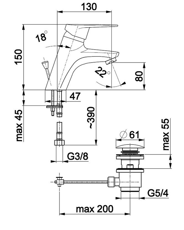Bateria topaz umywalkowa stojąca chrom
