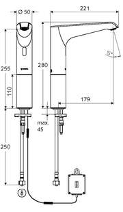 Sterowany czujnikiem podczerwieni. Zasilanie bateryjne. Przeznaczony do połączenia w sieć z systemem zarządzania wodą SCHELL SWS. Parametryzowana przez SCHELL Single Control SSC.
