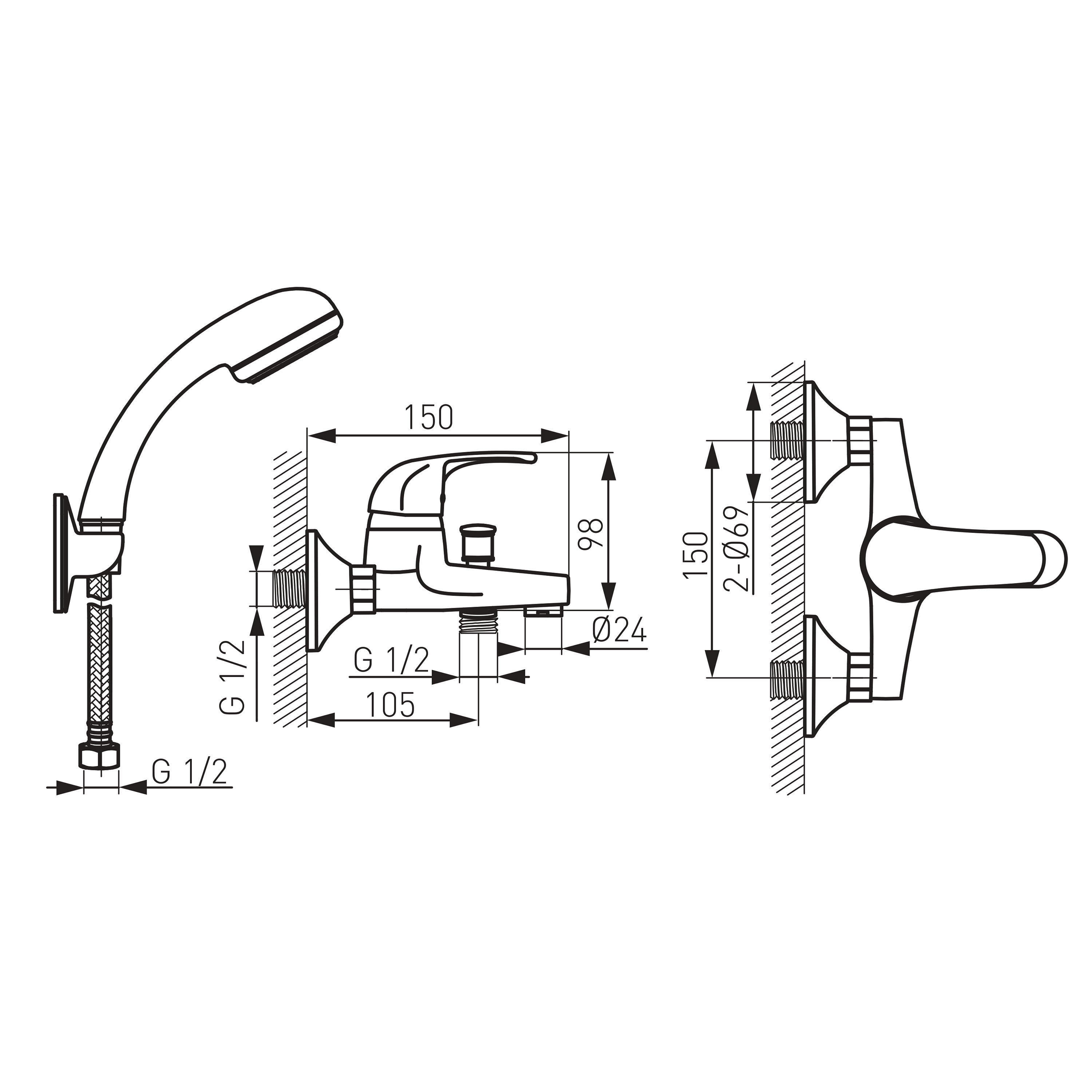 Bateria wannowa ścienna FERRO VASTO, kolor chrom