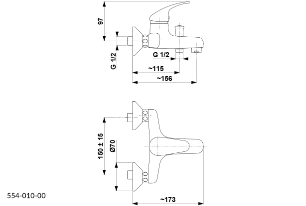 Bateria wannowa ścienna KFA Armatura BARYT, kolor chrom