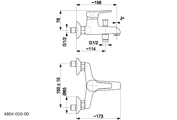 Bateria wannowa ścienna KFA Armatura BERYL, kolor chrom