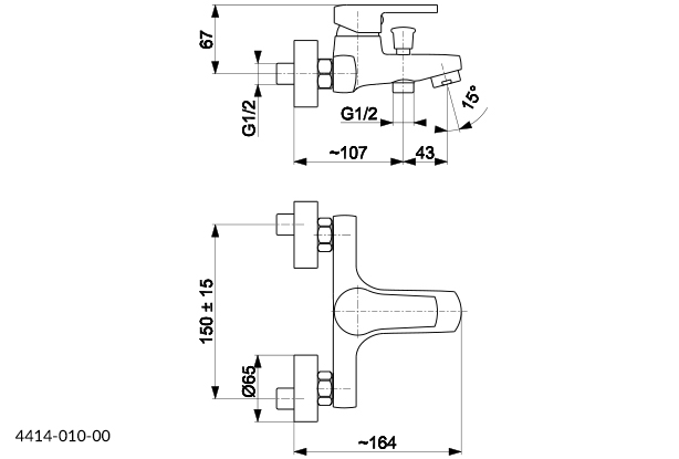 Bateria wannowa ścienna KFA Armatura SELEN, kolor chrom