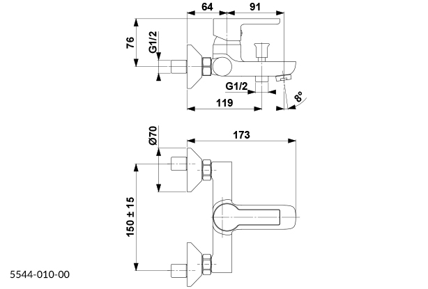 - Rozstaw przyłączy [mm]: 150 ± 15