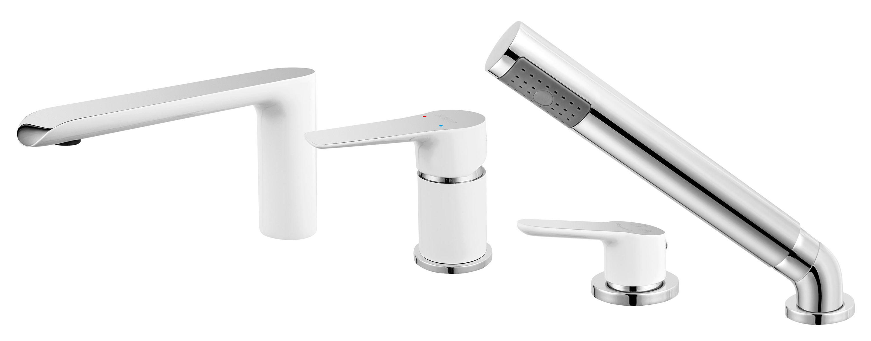 Bateria wannowa stojąca FERRO ADORE WHITE-CHROME, kolor chrom/biały, montaż czterootworowa