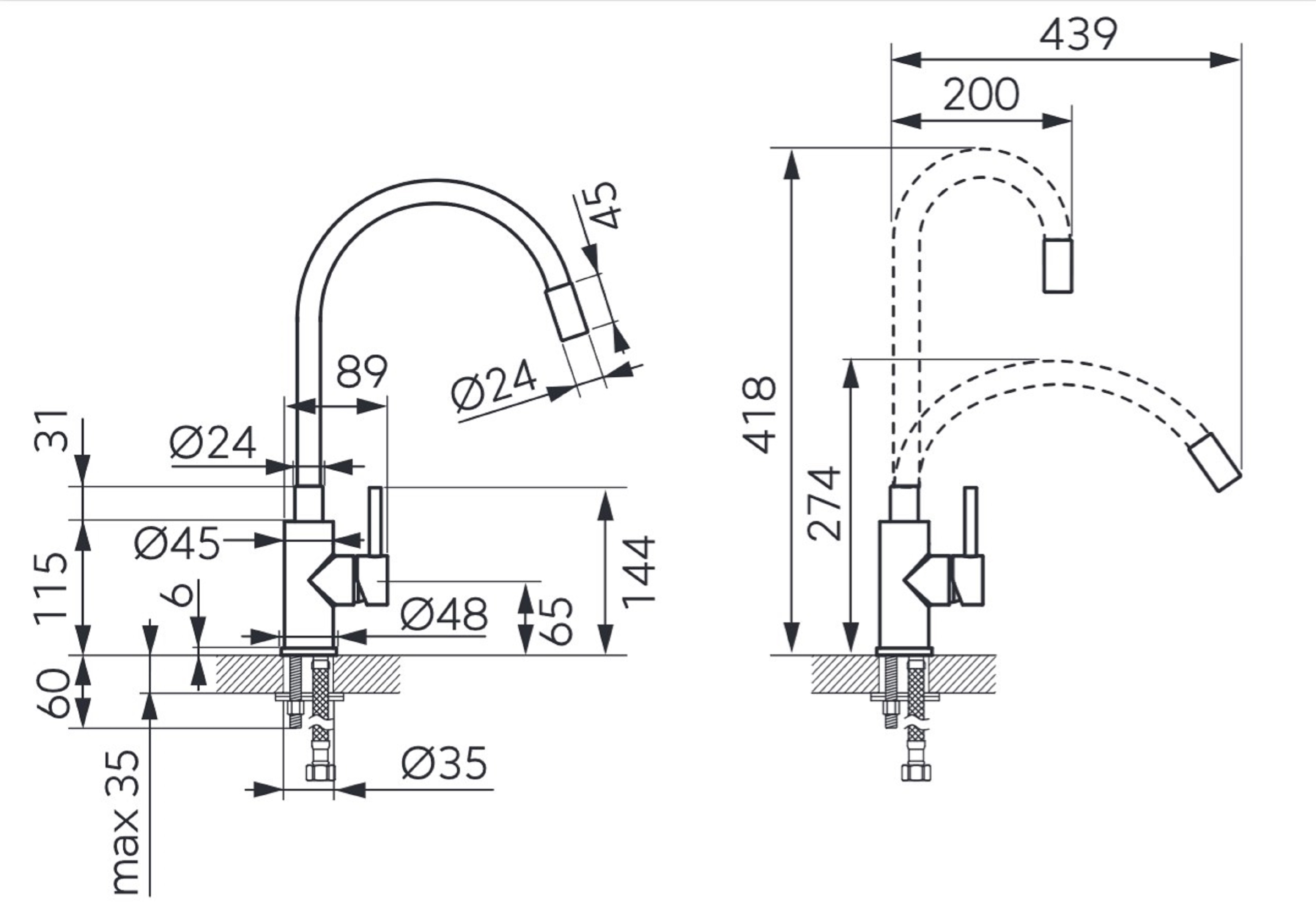 Nowoczesna bateria kuchenna z elastyczną i obrotową wylewką należąca do serii ZUMBA INOX sprawi, że zmywanie będzie łatwe i komfortowe. Wylewka, której wysokość można regulować w zakresie od 28 do 44 cm, a zasięg od 15 do 35 cm pozwoli na mycie naczyń o różnych kształtach i napełnianie ich wodą. Bateria zlewozmywakowa została wyposażona w wygodny w użyciu niewielki uchwyt. Posiada gwarantujący niezawodną pracę regulator ceramiczny. Biała barwa wylewki idealnie będzie komponować się ze ścianami, podłogą o