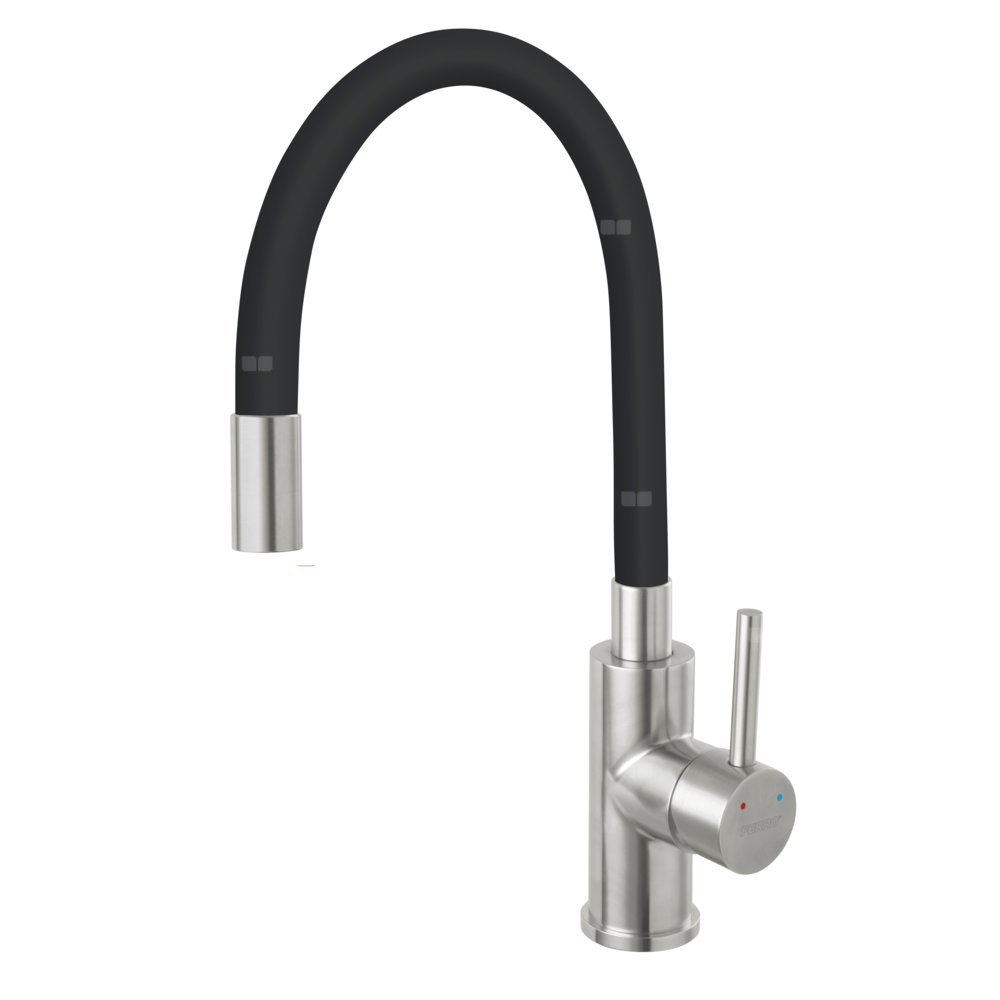 Bateria zlewozmywakowa FERRO ZUMBA INOX, kolor stal, elastyczna czarna wylewka