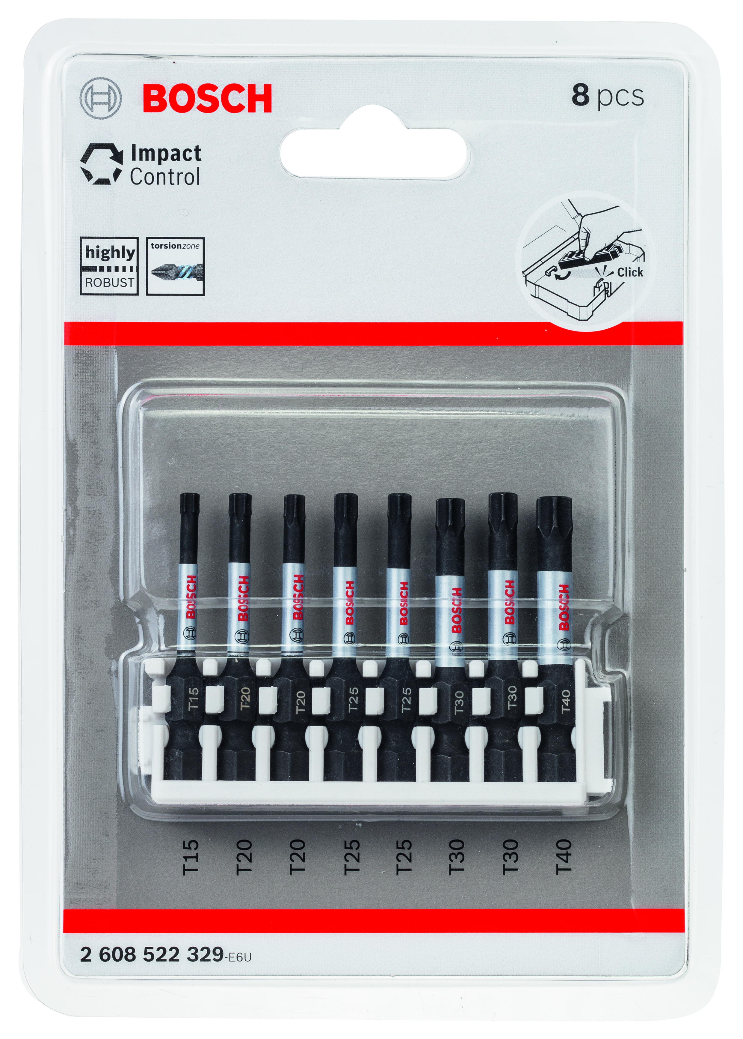 Bit PRO Torx Impact, T15, T20(2x), T25(2x), T30(2x), T40, 55 mm, 8 szt.
