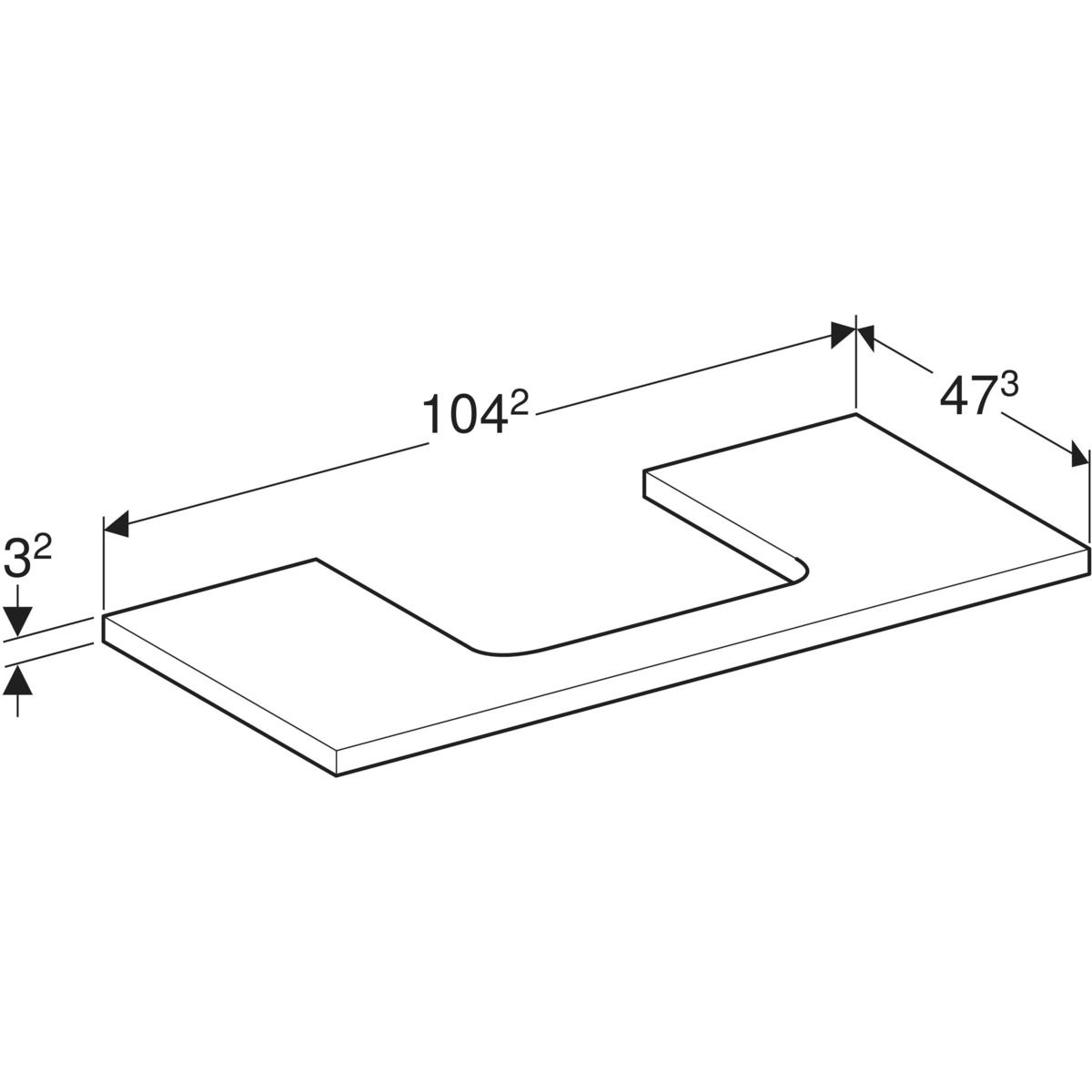 Blat pod umywalkę Geberit ONE z wycięciem, do prostokątnej umywalki nablatowej: B=104.2cm, Biały, Przekrój=Na środku, Lakierowany matowy