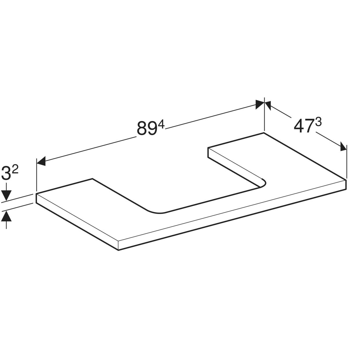 Blat pod umywalkę Geberit ONE z wycięciem, do prostokątnej umywalki nablatowej: B=89.4cm, Greige, Przekrój=Na środku, Lakierowany matowy