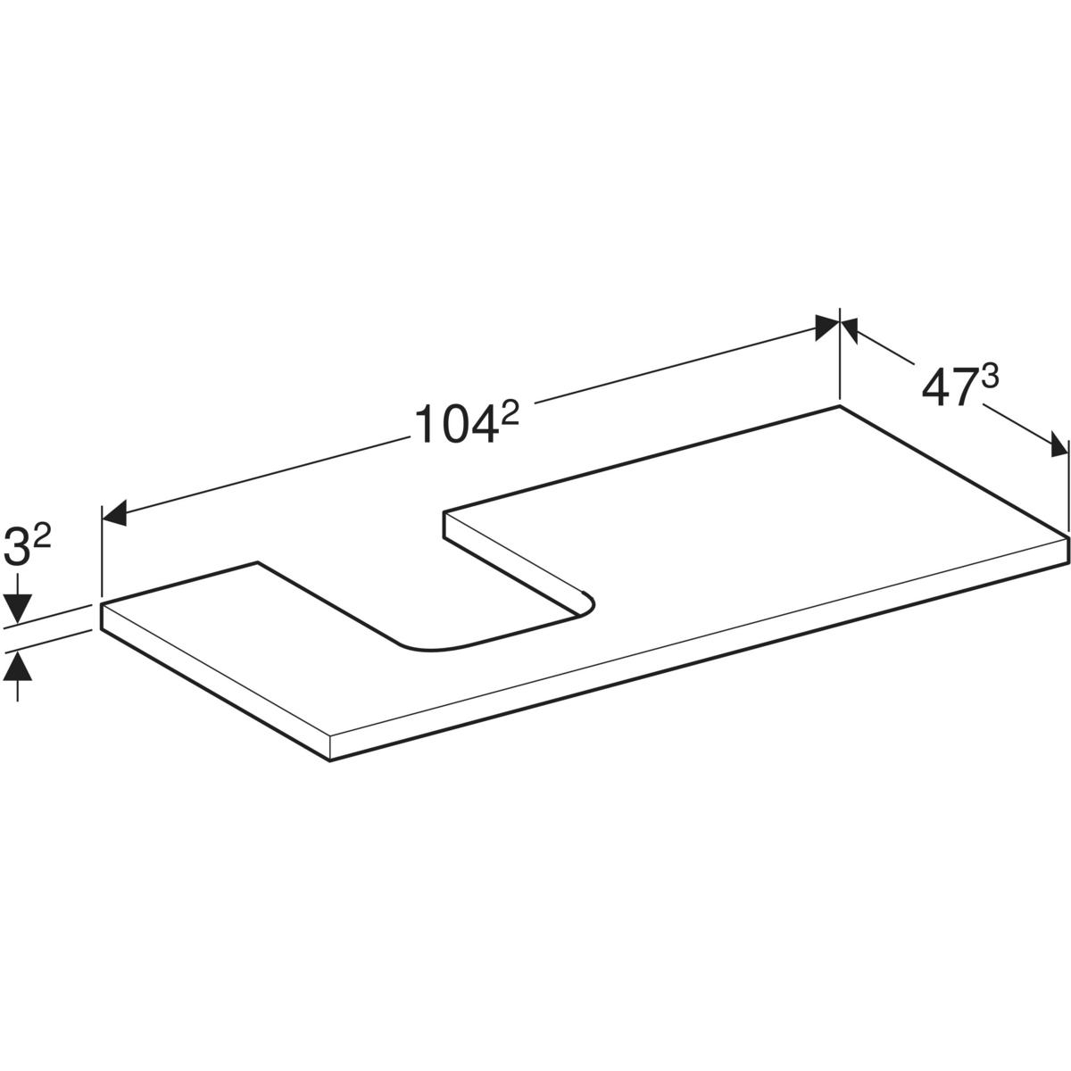 Blat pod umywalkę Geberit ONE z wycięciem, do umywalki nablatowej w kształcie misy: B=104.2cm, Orzech włoski hickory, Melamina, struktura drewna, Przekrój=Lewa strona