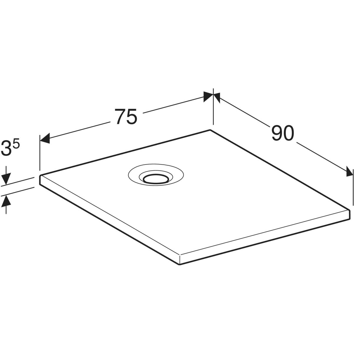 Brodzik prostokątny Geberit Nemea: 90x75x3.5cm, Biały / Błyszczący