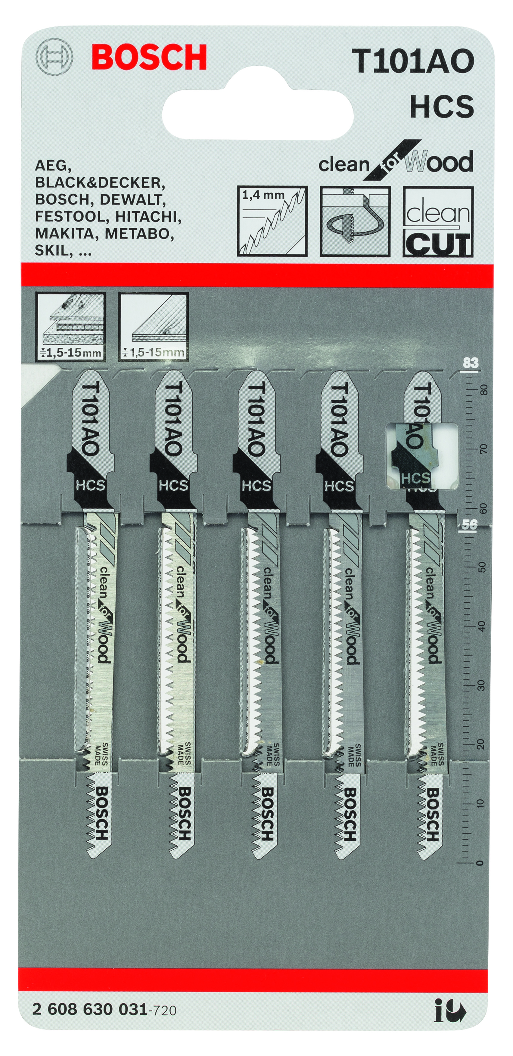Obszary zastosowań Miękkie drewno, sklejka, płyty powlekane (1,5-15 mm), szczególnie do cięć krzywoliniowych
