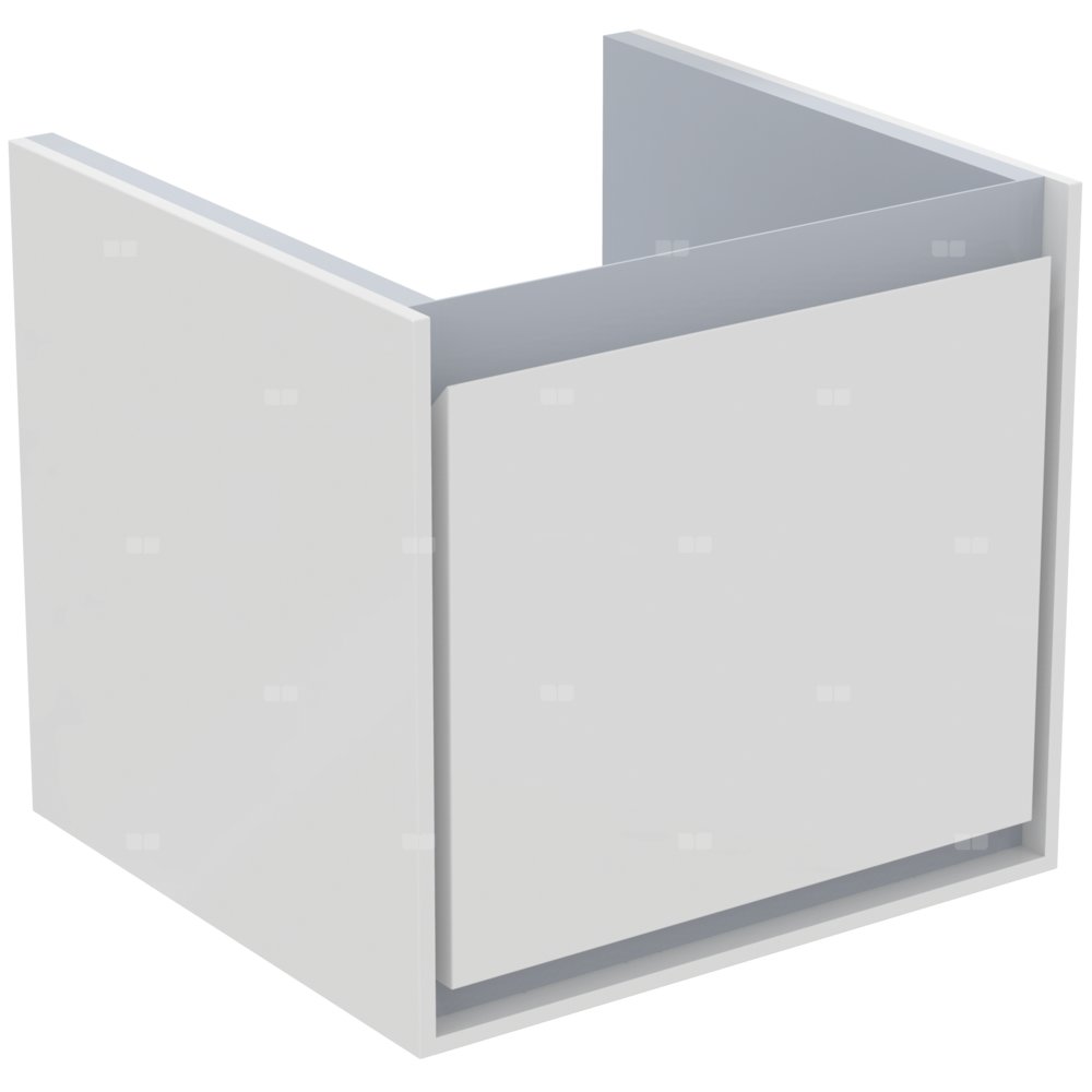 Wisząca. 1 szuflada ze zintegrowanym uchwytem. Szuflady z systemem samodomykania. Zestaw montażowy w komplecie. Szafka do skompletowania z: umywalką Cube 50 cm E074601. Zalecany: syfon oszczędzający przestrzeń EE23033967 (zamawiany oddzielnie).