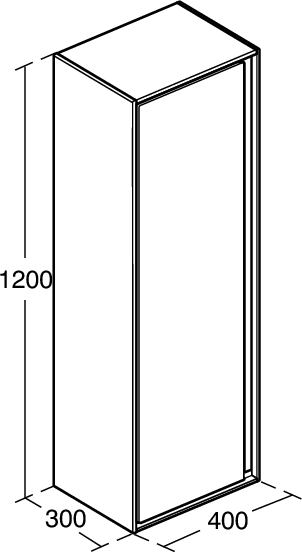 Szafka wisząca, odwracalna. Drzwi szafki ze zintegrowanym uchwytem. System samodomykania. Wewnątrz: 2 szklane półki. 1 wewnętrzna szuflada. Zestaw montażowy w komplecie.