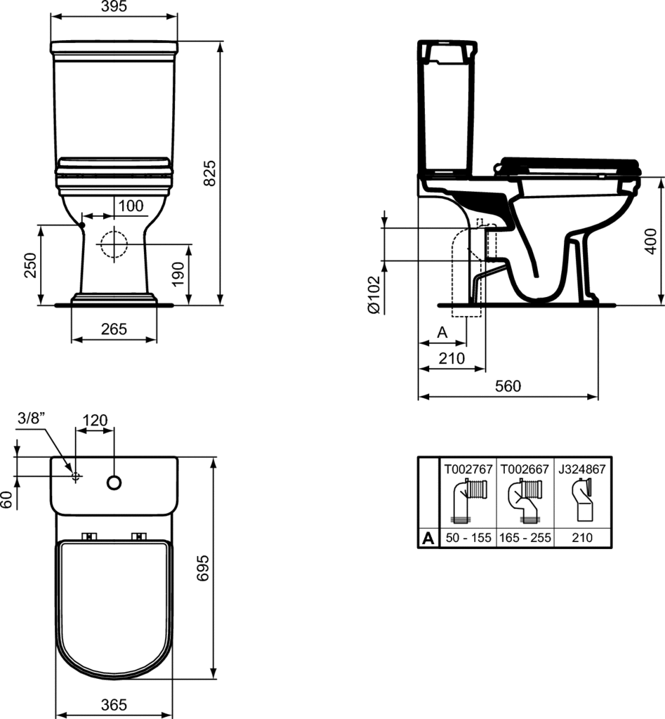 Zbiornik do kompaktu WC, dolny dopływ. Pojemność 4,5/3 L.