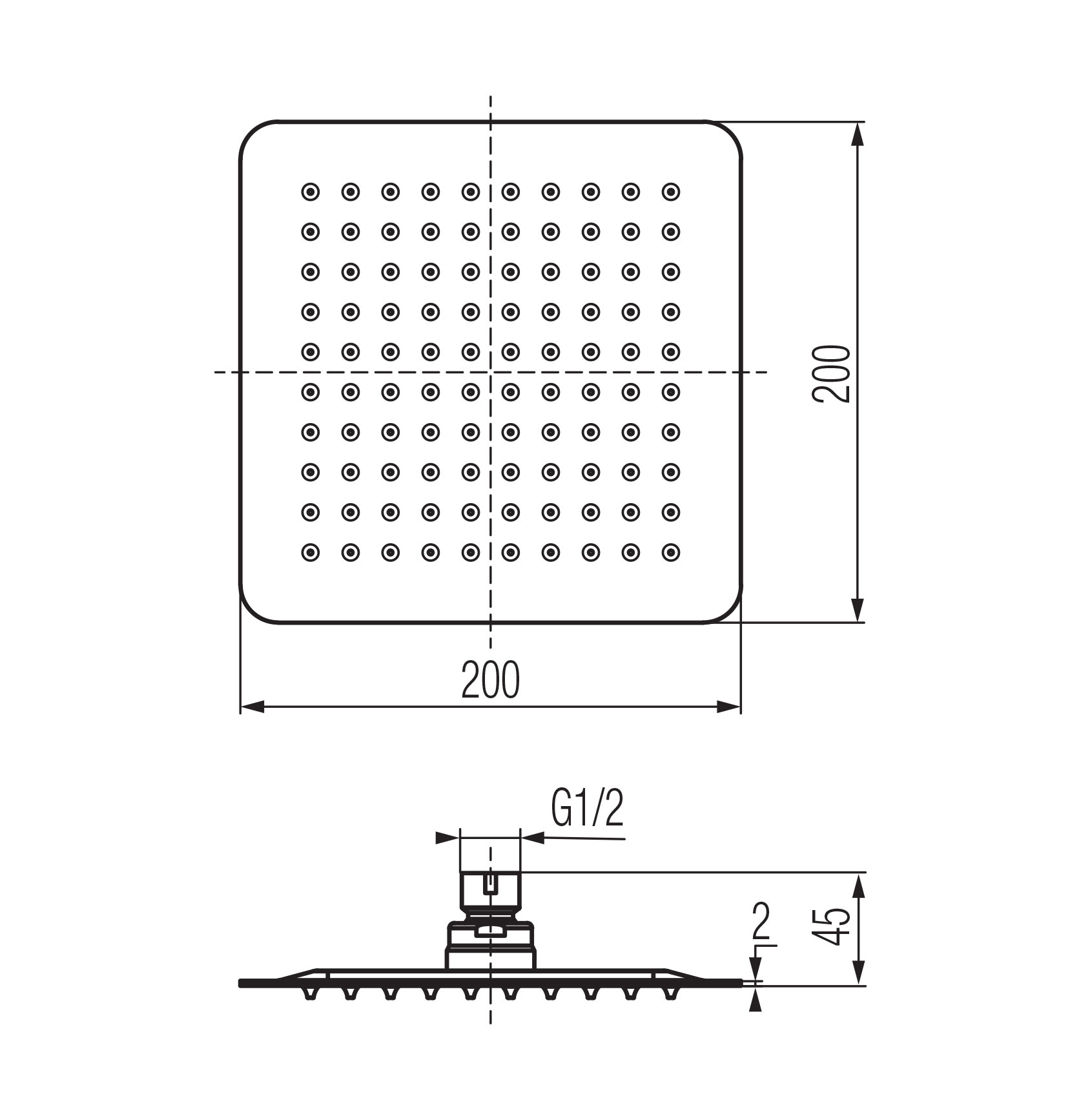 CARRE Głowica prysznicowa 250x250x2 mm chrom.