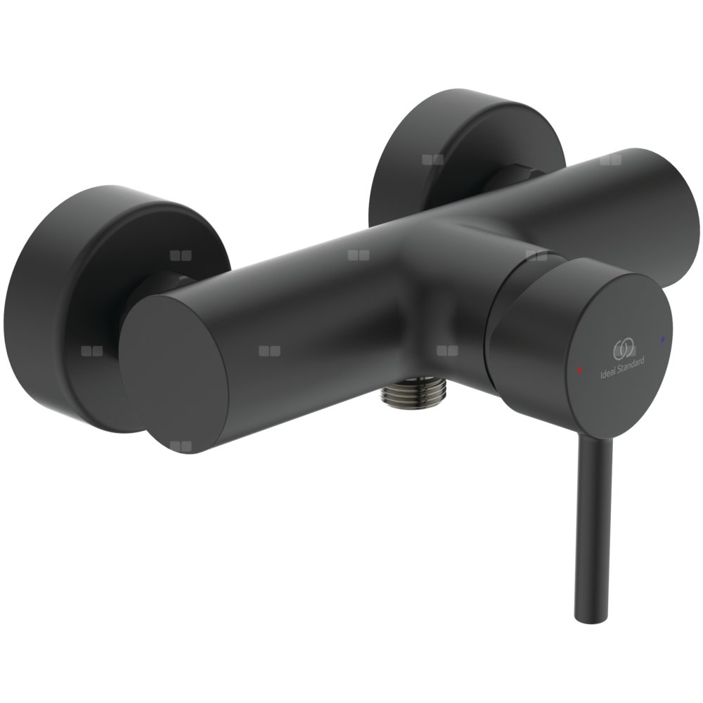 Głowica ceramiczna 35 mm z ogranicznikiem temperatury. Metalowy uchwyt z nadrukowanymi czerwonymi i niebieskimi oznaczeniami. Standardowe przyłącza ścienne. Zawór zwrotny. Zgodna z EN817.