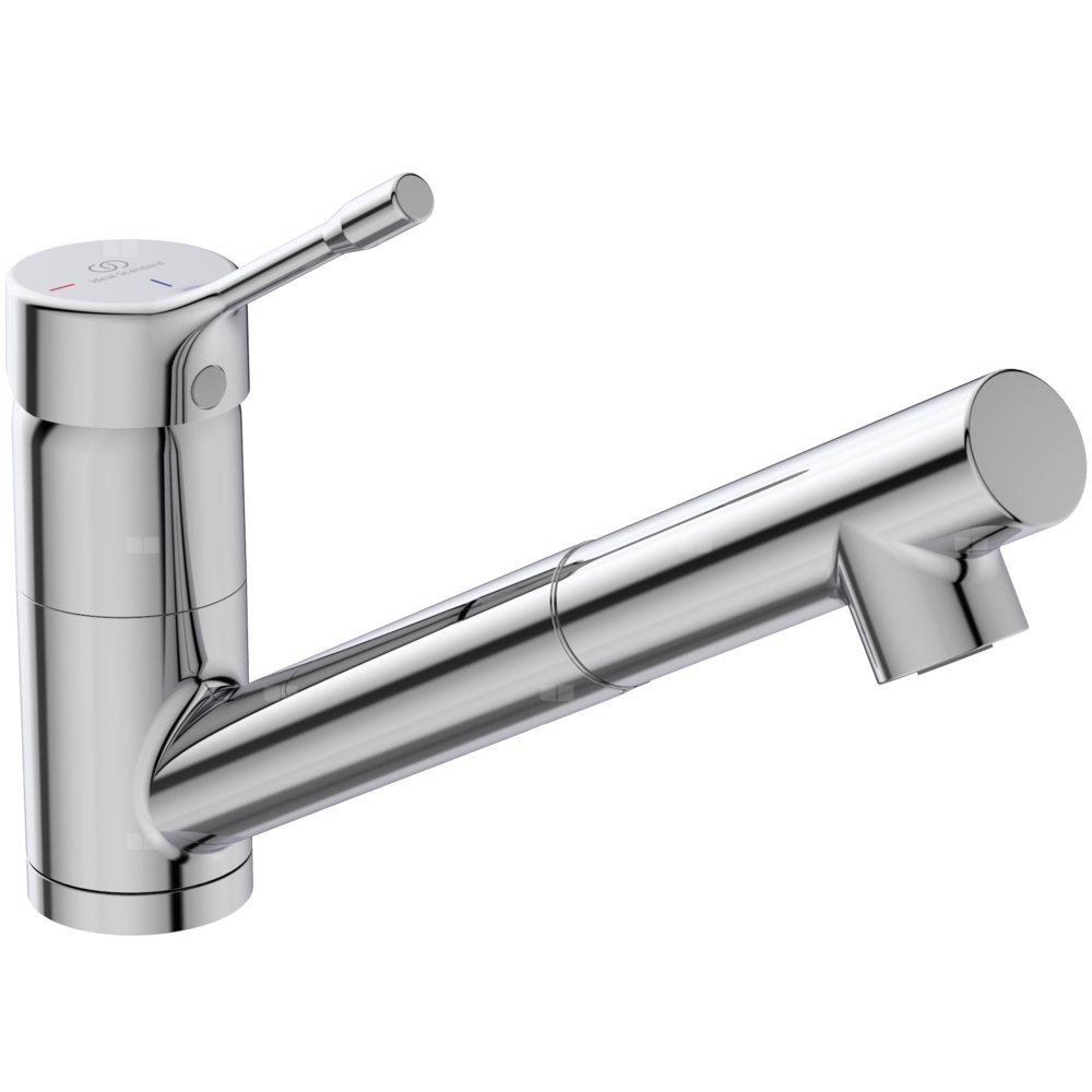 Wysoka ruchoma i wyciągana 1-funkcyjna wylewka typu L. Metalowy uchwyt z nadrukowanymi czerwonymi i niebieskimi oznaczeniami. Technologia Cold Start - przepływ wody zimnej wody. Ukryty aerator. Innowacyjna ceramiczna głowica FirmaFlow 38 mm z ogranicznikiem temperatury. Technologia Click. Wężyki przyłączeniowe G3/8”. System montażu Easy-Fix. W kompaktowym pudełku. Zgodność z normą EN817.