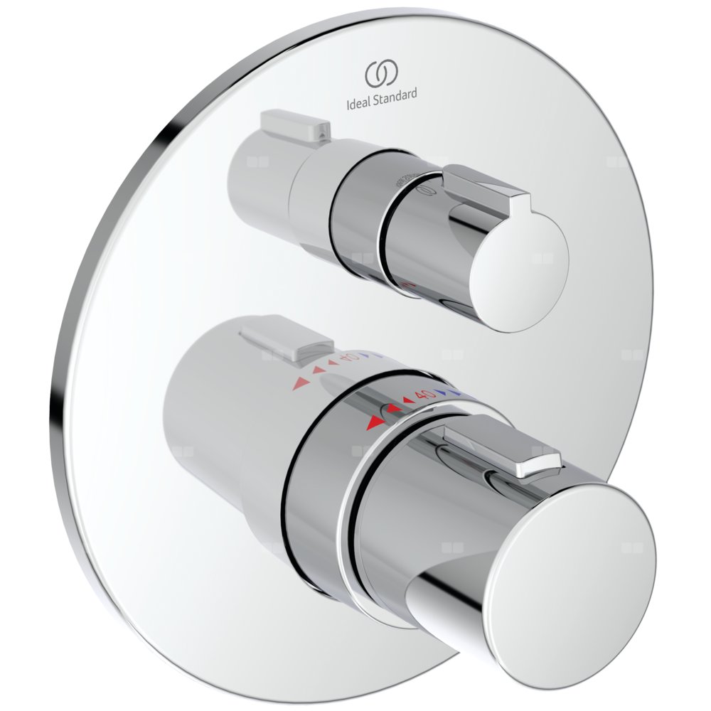 Zestaw montażowy baterii termostatycznej natryskowej podtynkowej (część zewnętrzna). Z głowicą termostatycznną IS (nowa technologia). Ceramiczny zawór talerzowy włącz/wyłącz 90° i przyłączem gwint 3/4''. Bez zintegrowanego przełącznika. Bez akcesoriów w komplecie. Niezbędne wyposażenie: zestaw montażowy A1000NU (część wewnętrzna).