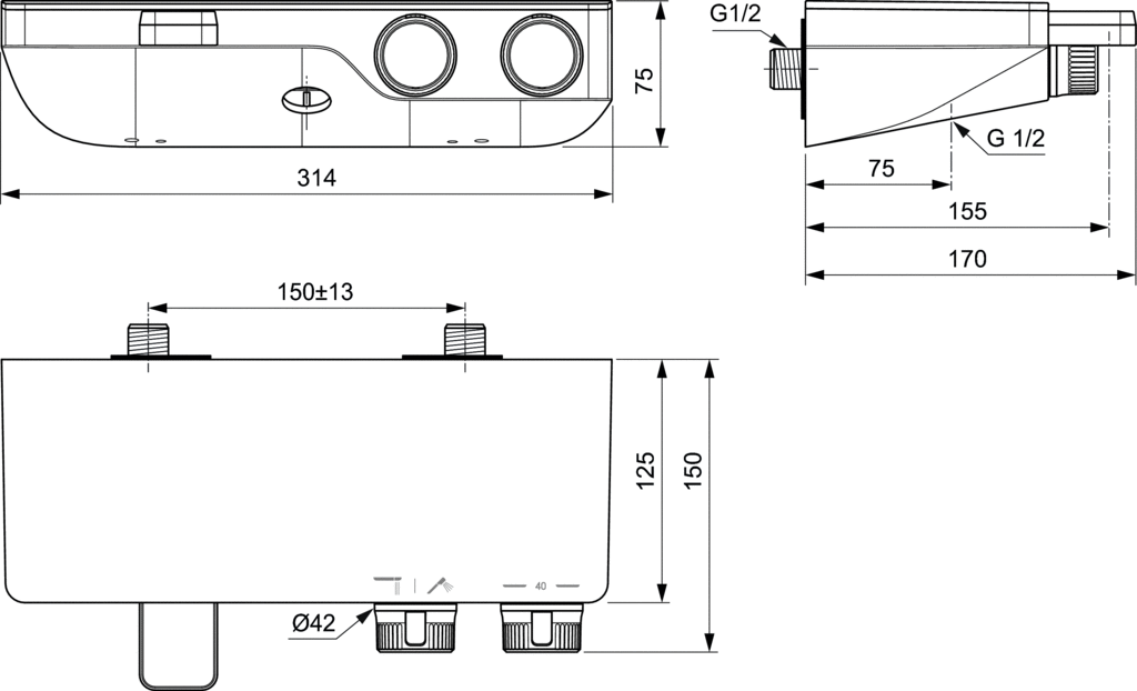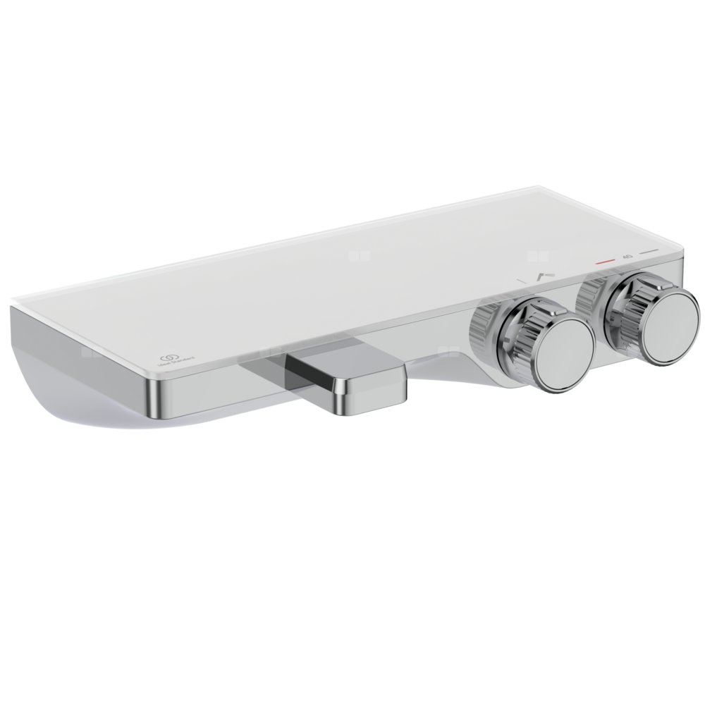 Ukryte przyłącza mimośrodowe, zintegrowane z korpusem baterii. Głowica termostatyczna IS nowej technologii. Regulacja temperatury termostatu przez pokrętło. Uchwyt z ogranicznikiem temperatury do 40°C. Regulacja mocy przepływu przez pokrętło, głowica ceramiczna G1/2’’ 90°. Funcja ECO redukcjąca przepływ wody wody o 50%. Wylewka z aeratorem Neoperl M24x1 w technologii SSR (regulacja strumienia wody). Łatwe użytkowanie dzięki pokrętłom umiejscowionym od frontu. Półka wykonana z bezpiecznego szkła w kolorze białym. Przyłącze natryskowe G1/2". Zintegrowane zawory zwrotne w przyłączach baterii. Funkcja Cool body zapobiegająca poparzeniu przez korpus baterii.