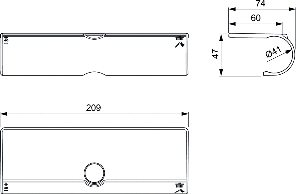 Nakładana półka do systemów natryskowych ściennych. Akcesoria z chromowanego tworzywa. Wskaźnik temperatury umożliwiający wyraźne określenie temperatury za pomocą cyfr. Użyteczna przestrzeń na przechowywanie pod prysznicem. Do zamontowania tylko podczas instalacji. Stosować tylko w połączeniu z systemami prysznicowymi opartymi na prysznicowych bateriach termostatycznych Ceratherm T25, T50, T100, T125.