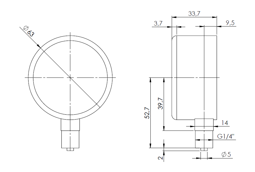 Przeznaczony do pomiaru ciśnień gazów suchych, które nie działają niszcząco na stopy miedzi.