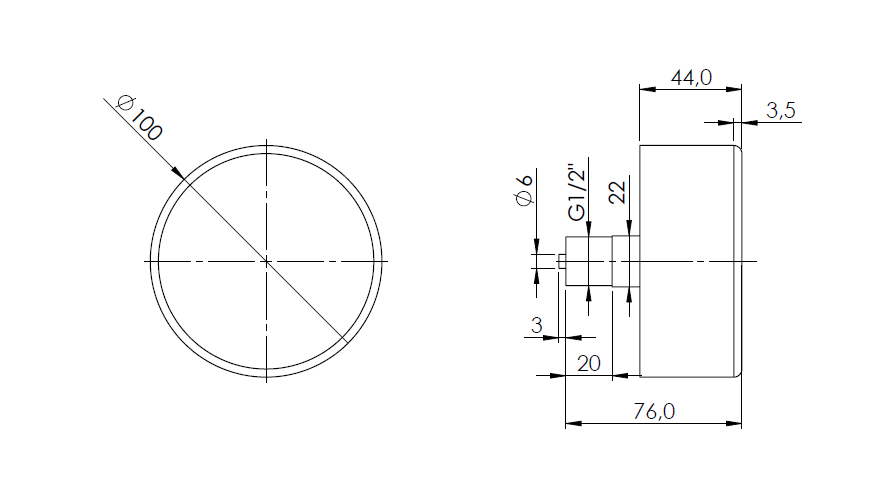 Przeznaczony do pomiaru ciśnień gazów suchych, które nie działają niszcząco na stopy miedzi.