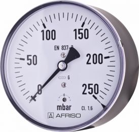 Ciśnieniomierz różnicowy AFRISO KP D411 0/600 mbar mosiądz G1/2B aksjalne fi 160, kl. 1.6%