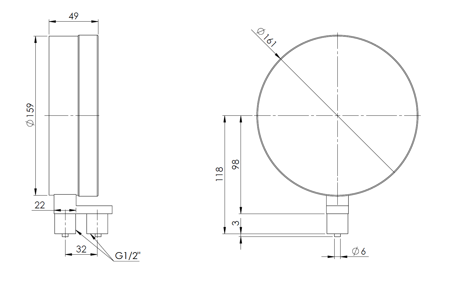 Ciśnieniomierz różnicowy AFRISO KP Dif D401 0/160 mbar mosiądz G1/2B radialne fi 160, kl. 1.6%