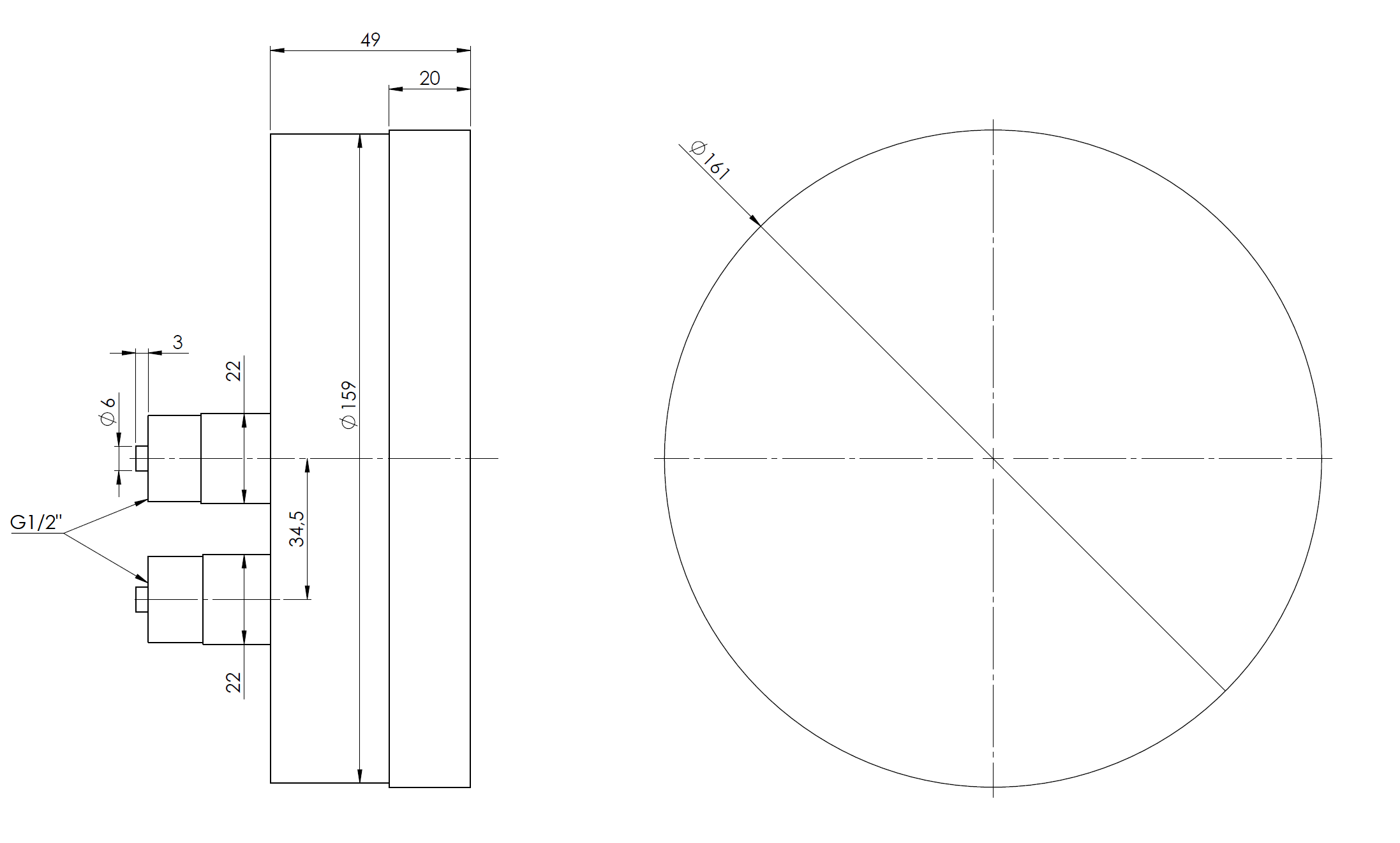 Ciśnieniomierz różnicowy AFRISO KP Dif D411 0/25 mbar mosiądz G1/2B aksjalne fi 160, kl. 1.6%