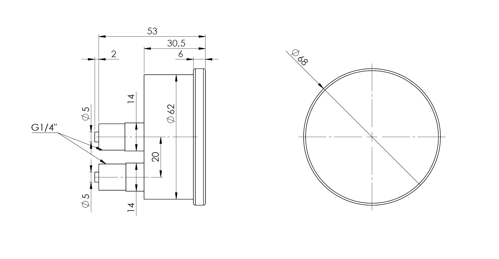 Ciśnieniomierz różnicowy AFRISO KP Dif D911 0/160 mbar mosiądz G1/4B aksjalne fi 63, kl. 1.6%