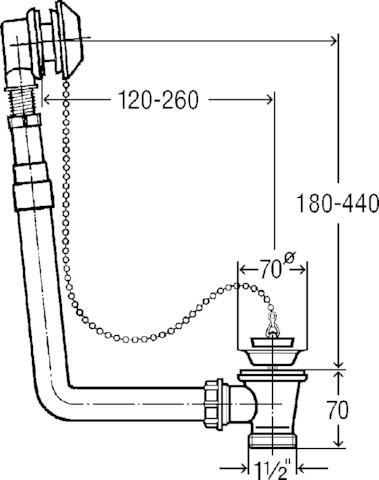 Citaplex-komplet odpływowo-przelewowy nr wzoru 6176 G: 1½ wanna standardowa do wanien z otworem odpływowym fi 52