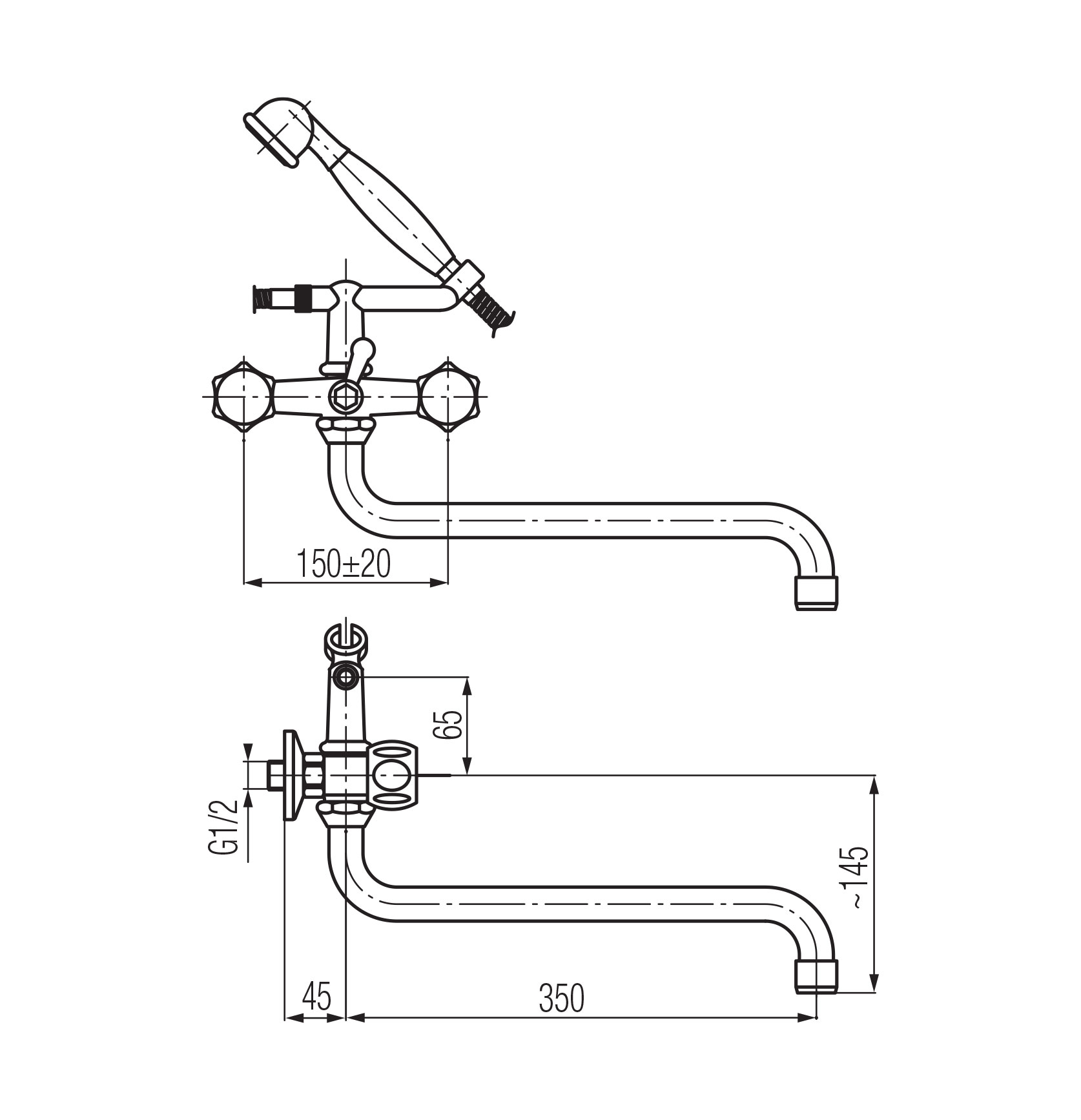 CLASS Bateria wannowa/umywalkowa ścienna z akcesoriami