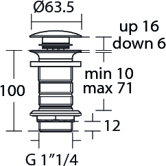 Korek typu Click-Clack 1 1/4” do umywalki z przelewem (E1482XG). Wykonany z mosiądzu Korek z otworami do umywalek bez otworu przelewowego.