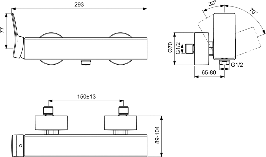 Głowica ceramiczna 38 mm z ogranicznikiem temperatury wody. Logo Ideal Standard umieszczone na korpusie baterii. Metalowy uchwyt bez oznaczenia wody ciepłej i zimnej. Zawór zwrotny. Osłonięte i wyciszone przyłącza ścienne. Areatortypu Cache M16, 5x1 - 5 l/min.