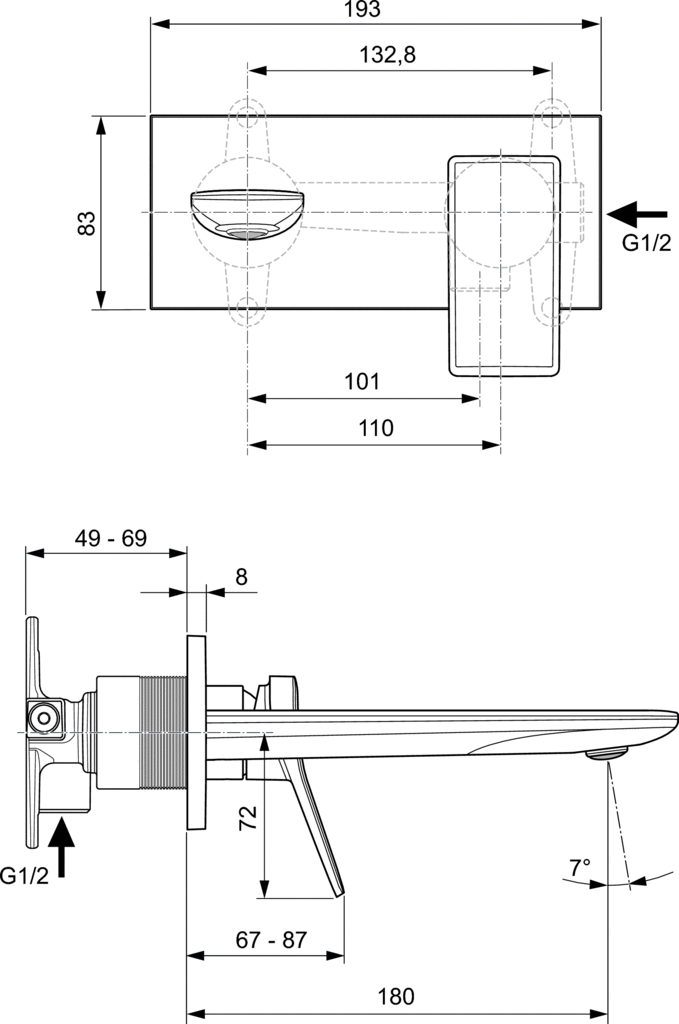 Zestaw montażowy podtynkowej baterii umywalkowej Conca. Głowica ceramiczna 28 mm z ogranicznikiem temperatury wody. Bez funkcji Click. Element zewnątrzny, do skompletowania z elementem montażowym. Odlewana wylewka długości 180 mm. Metalowy uchwyt z logo Ideal Standard bez oznaczeń. Prostokątna metalowa rozeta dla uchwytu i wylewki. Aerator M24x1 z ogranicznikiem przepływu wody do 5 l/min. Do skompletowania z elementem montażowym A1313NU.