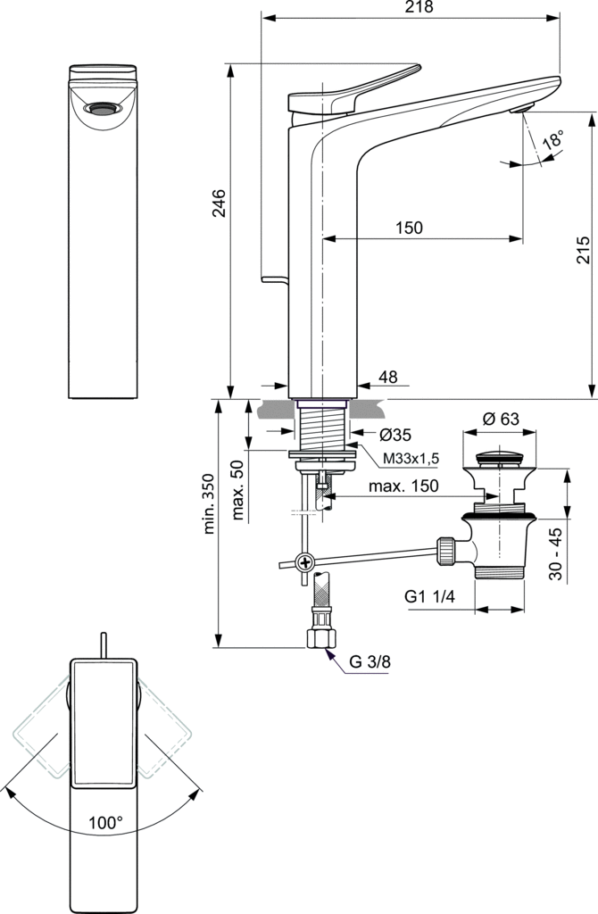 • Min. głębokość: 218 mm