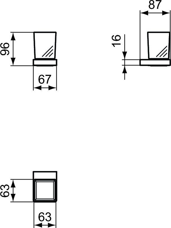 Kubek toaletowy Conca kwadratowy wiszący szklany. Szkło matowe. Zestaw montażowy w komplecie. Dostępne wykończenia: - technologia galwanizacji (AA), - technologia PVD (GN, A2, A5).