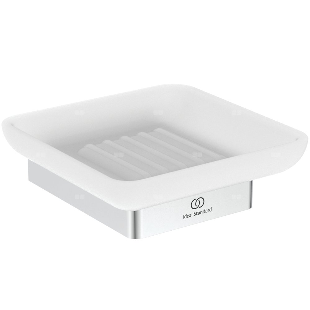 Mydelniczka Conca wisząca kwadratowa. Szkło matowe. Zestaw montażowy w komplecie. Dostępne wykończenia: - technologia galwanizacji (AA), - technologia PVD (GN, A2, A5).